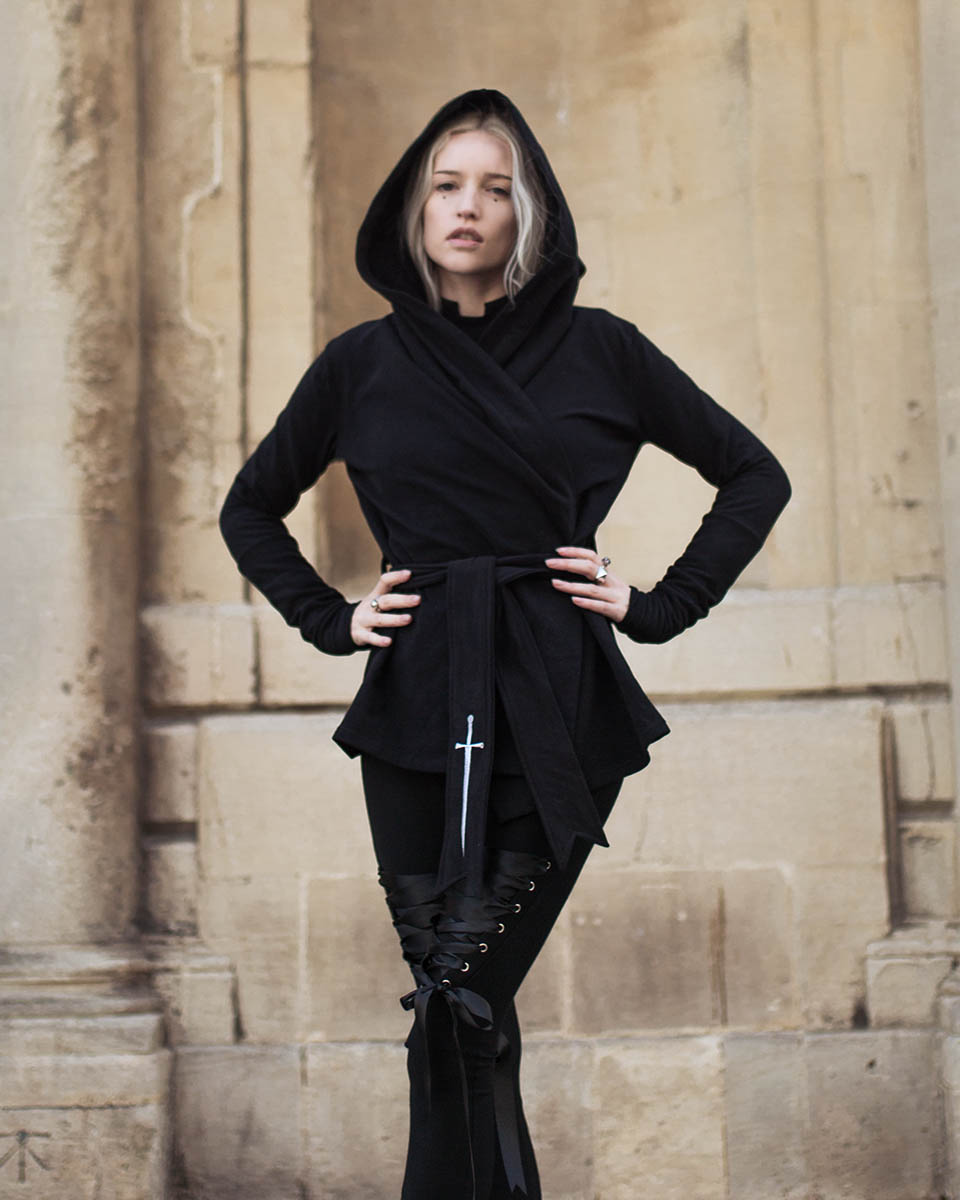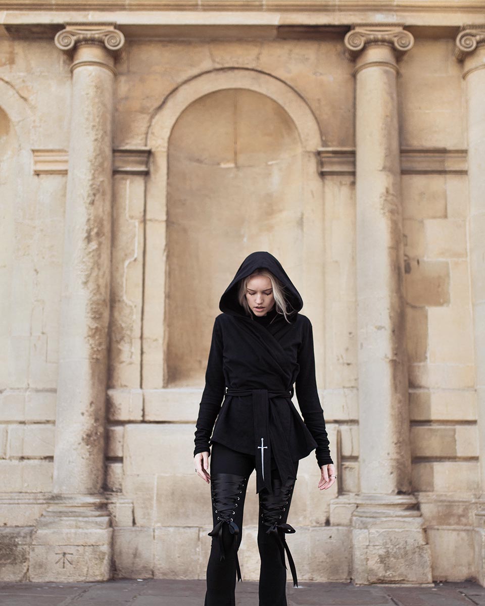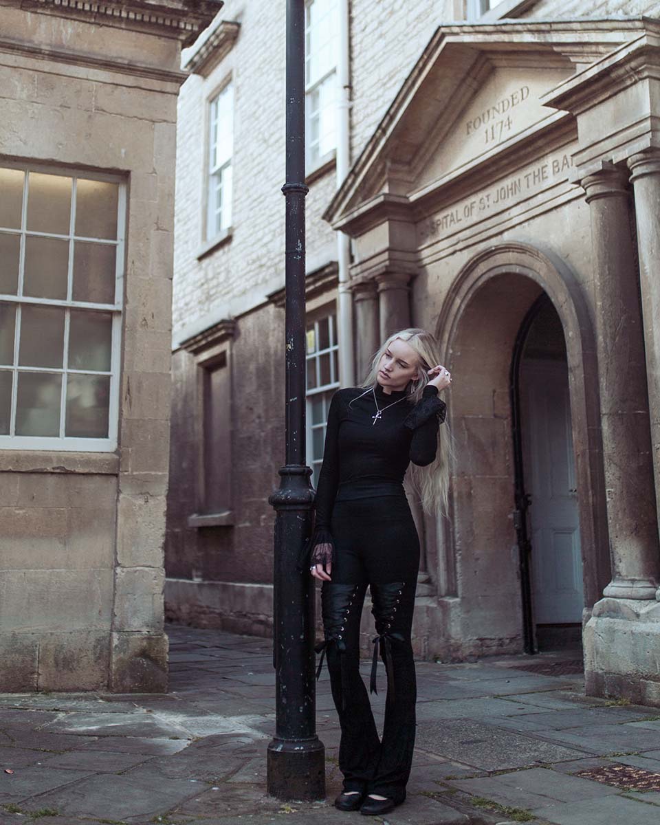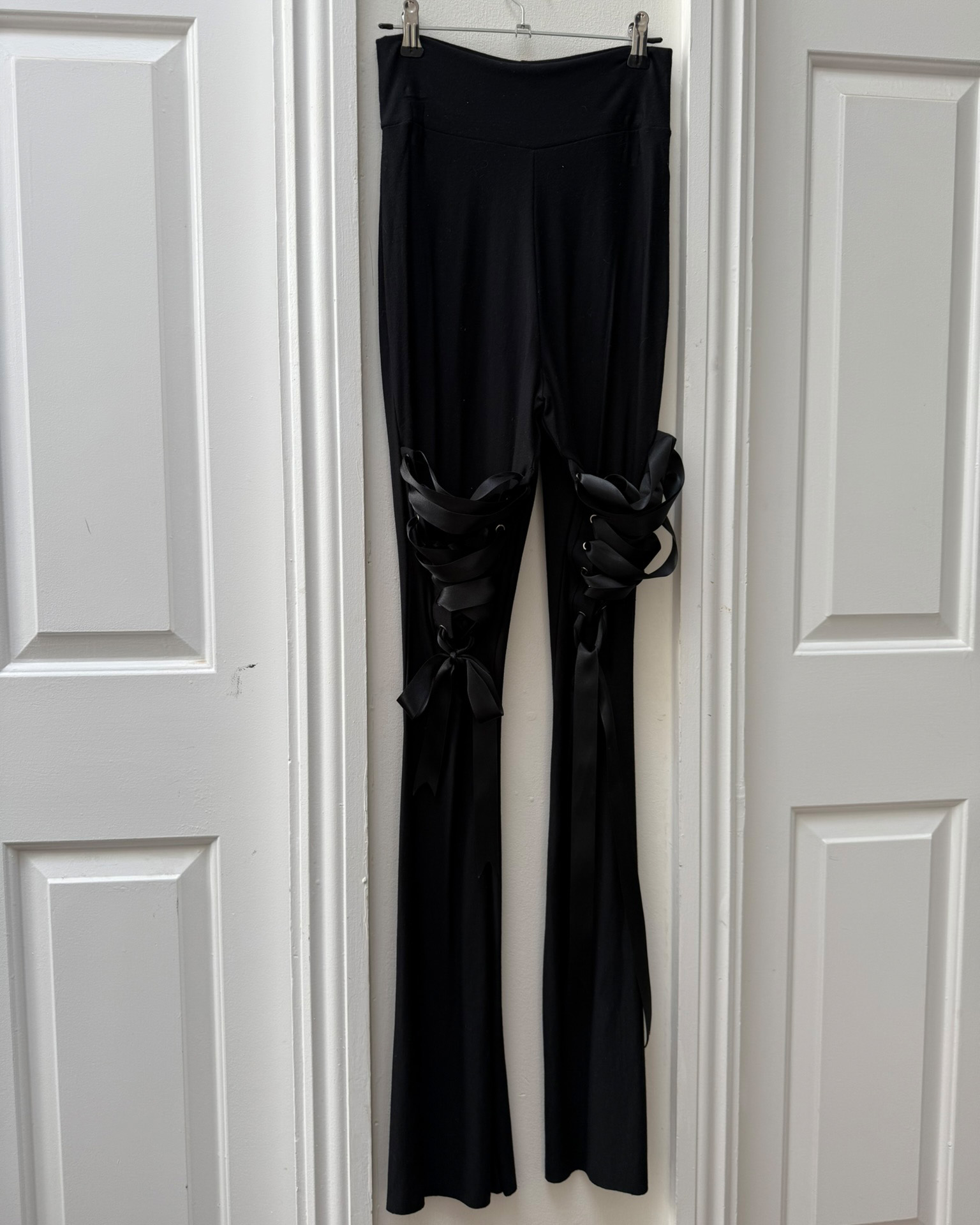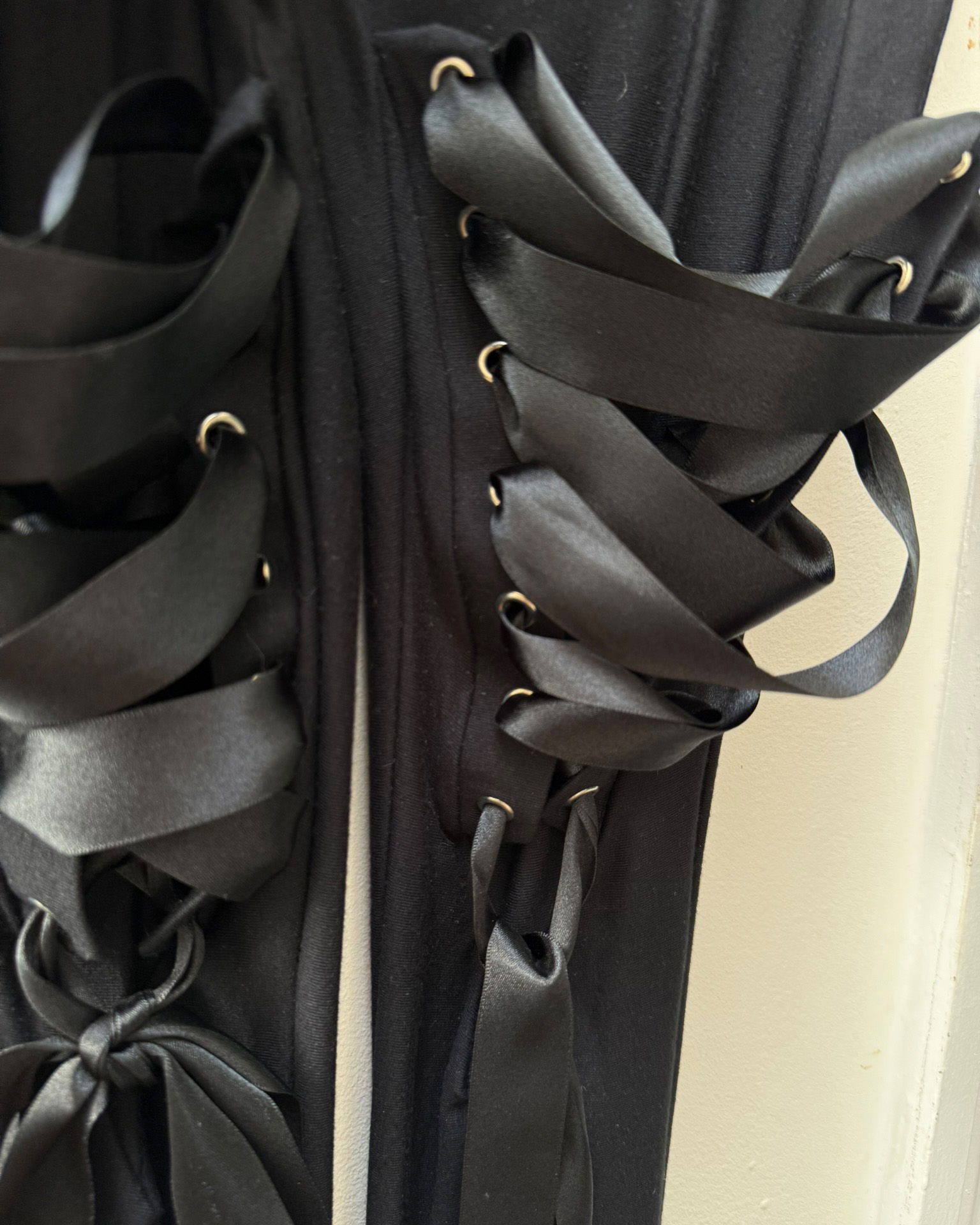 Modal jersey leggings with eyelets, laced in recycled polyester ribbon