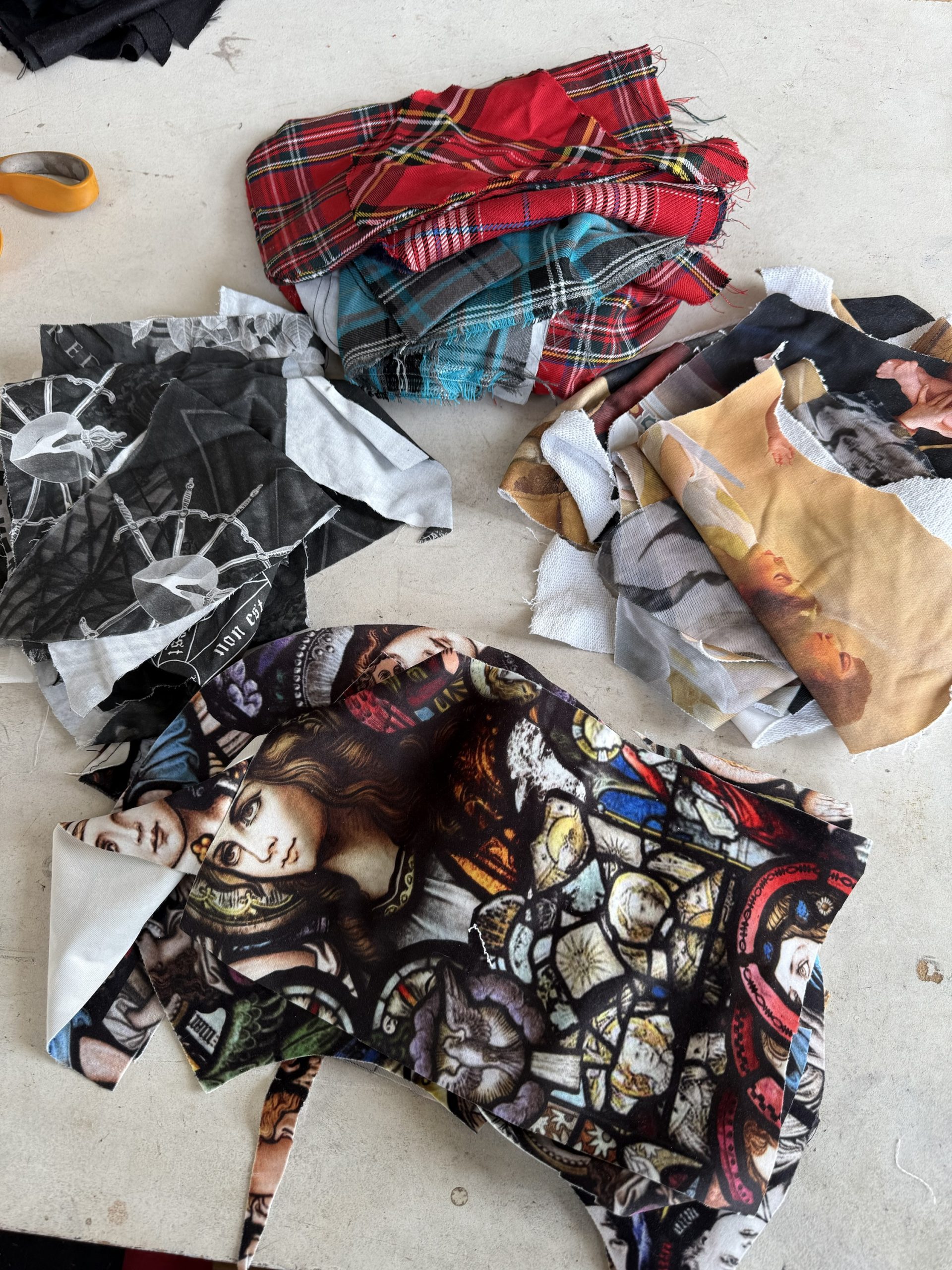 Mix of prints & tartans, some on cotton sweatshirting, some on poly velvet and some cotton sateen.
