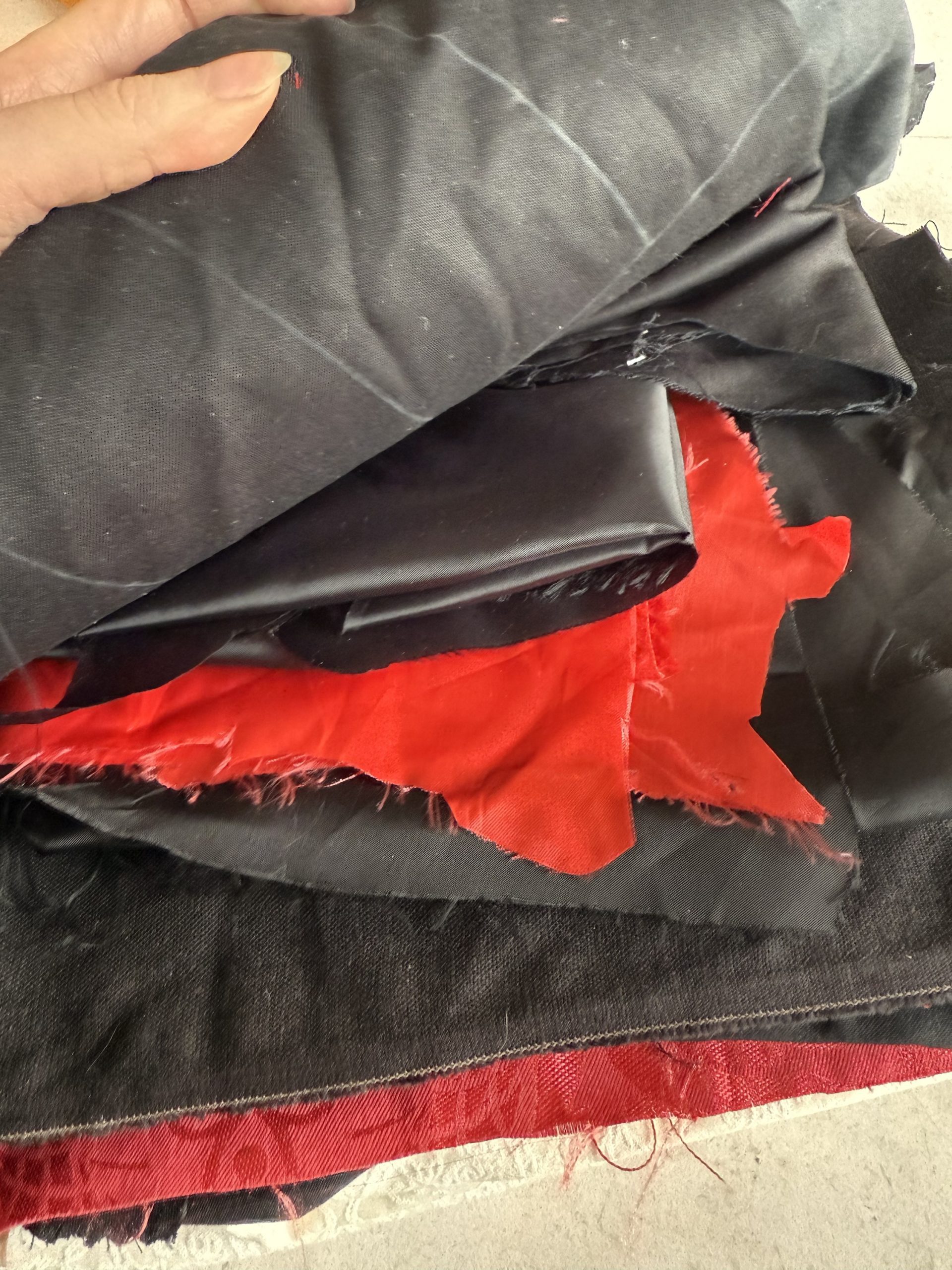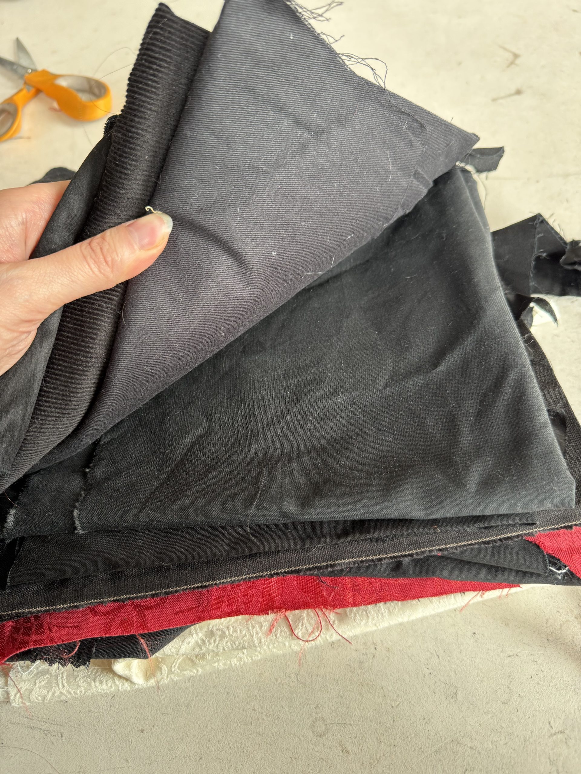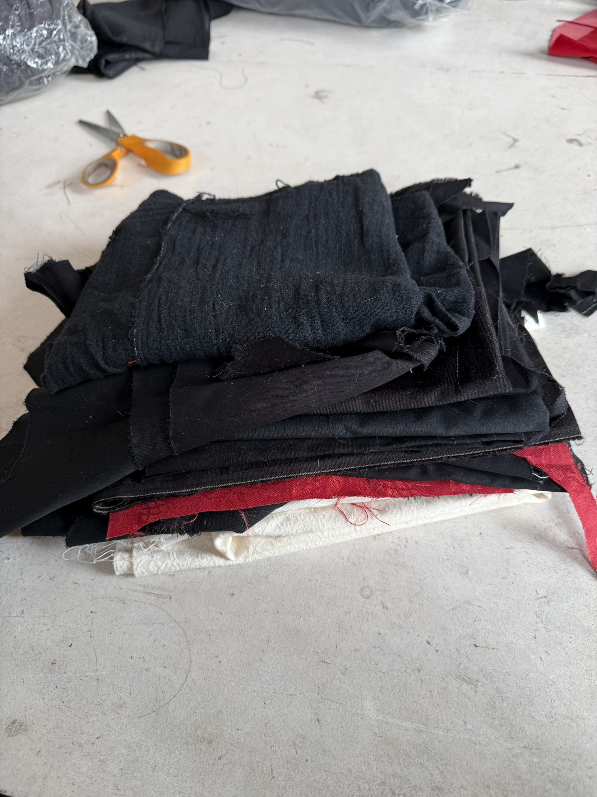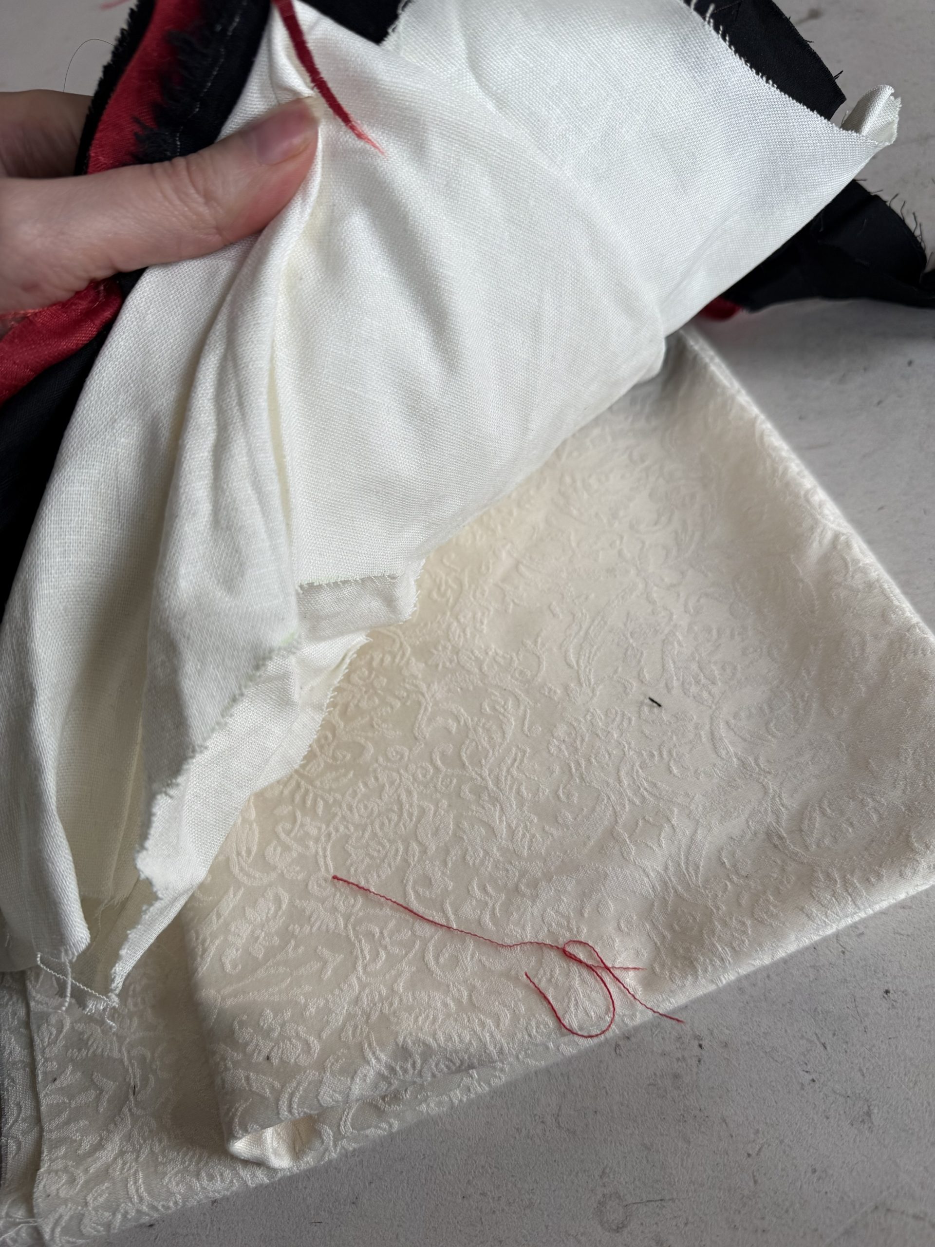 Lightweight wovens including some lining fabrics in cupro. Some ivory stretch viscose jacquard, some cotton double gauze and more.