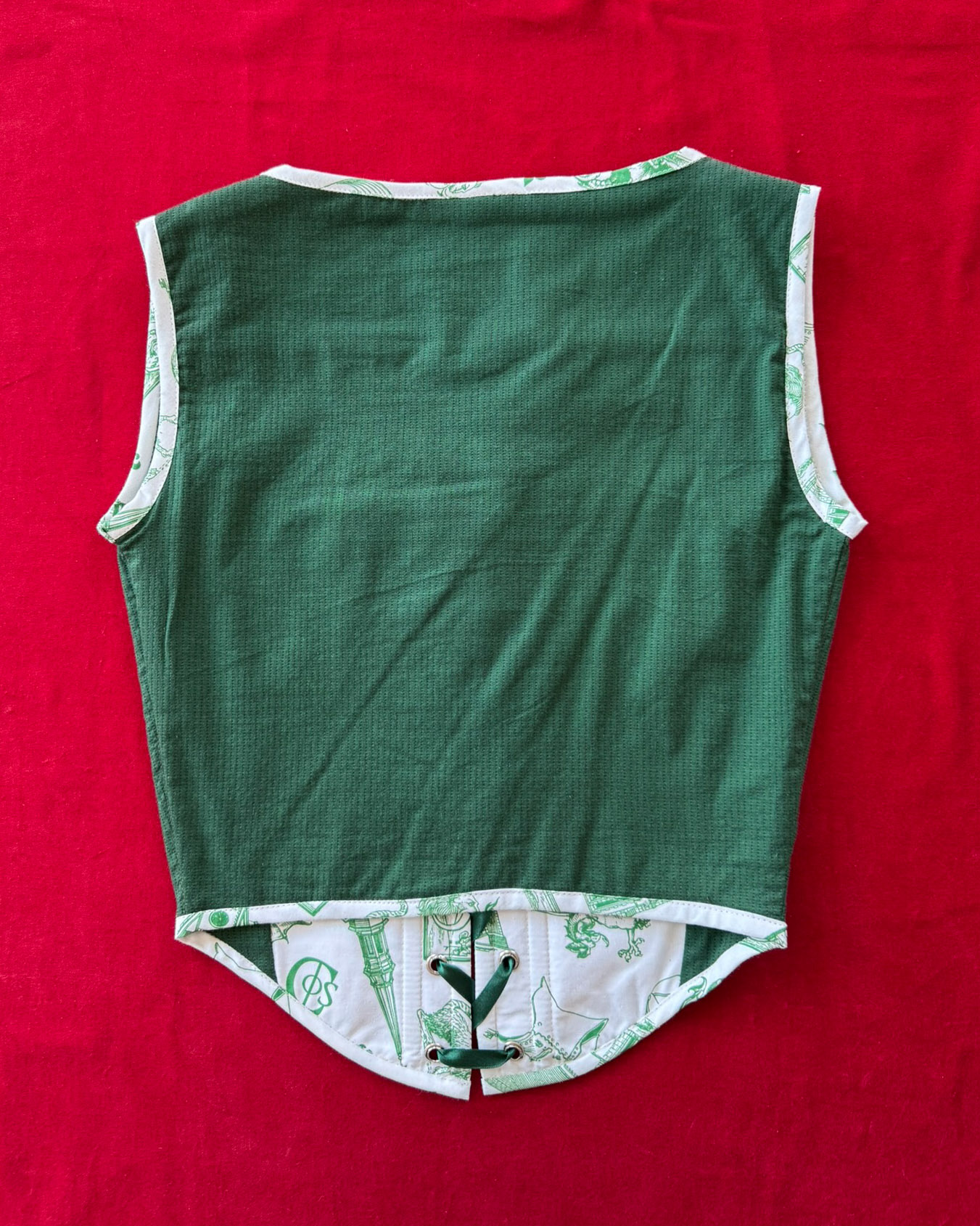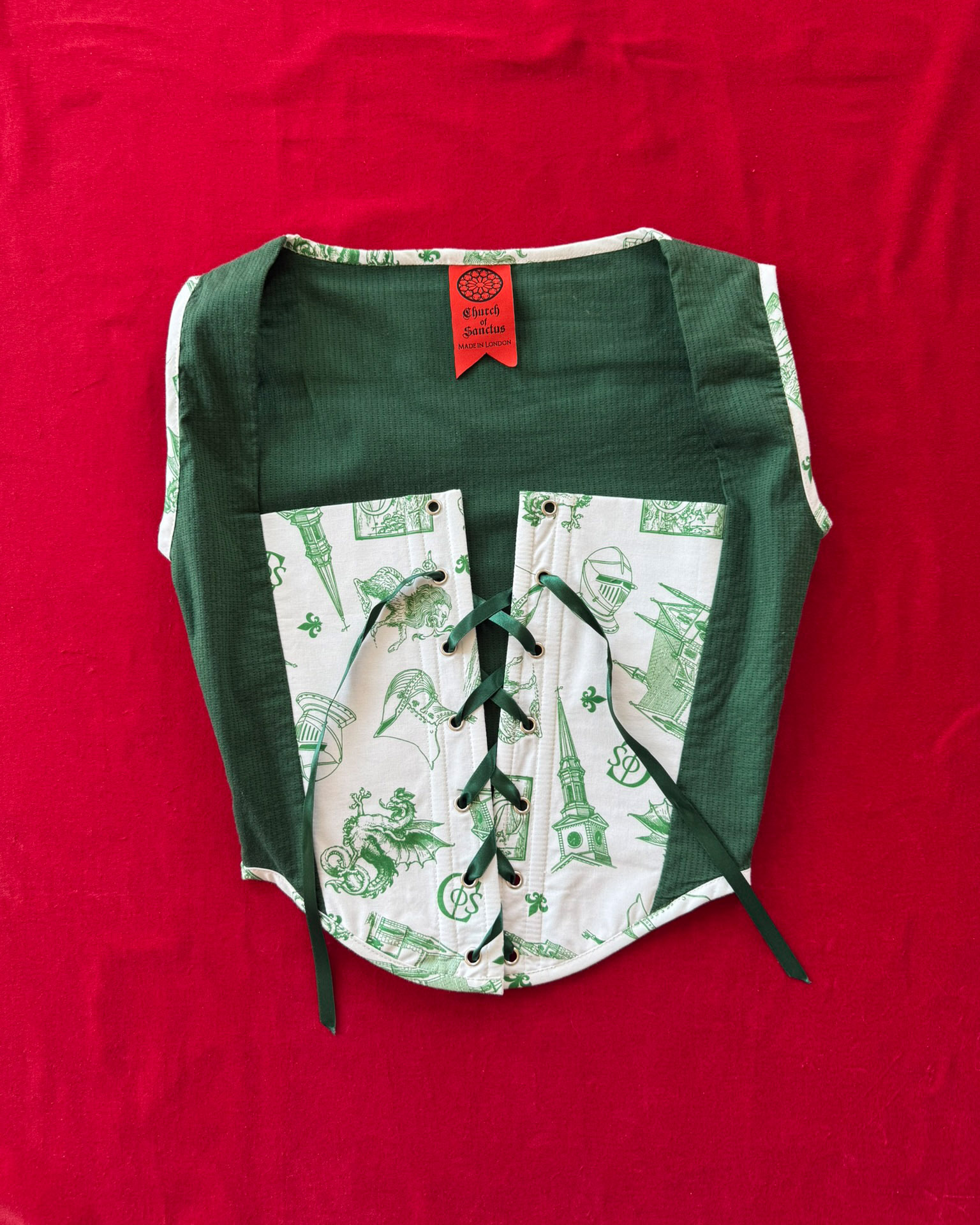 Printed cotton corset laced in recycled ribbon