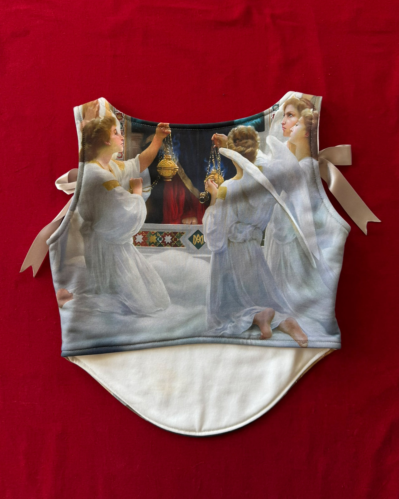 Stretchy comfy ‘stays’ shape top in printed cotton french terry.