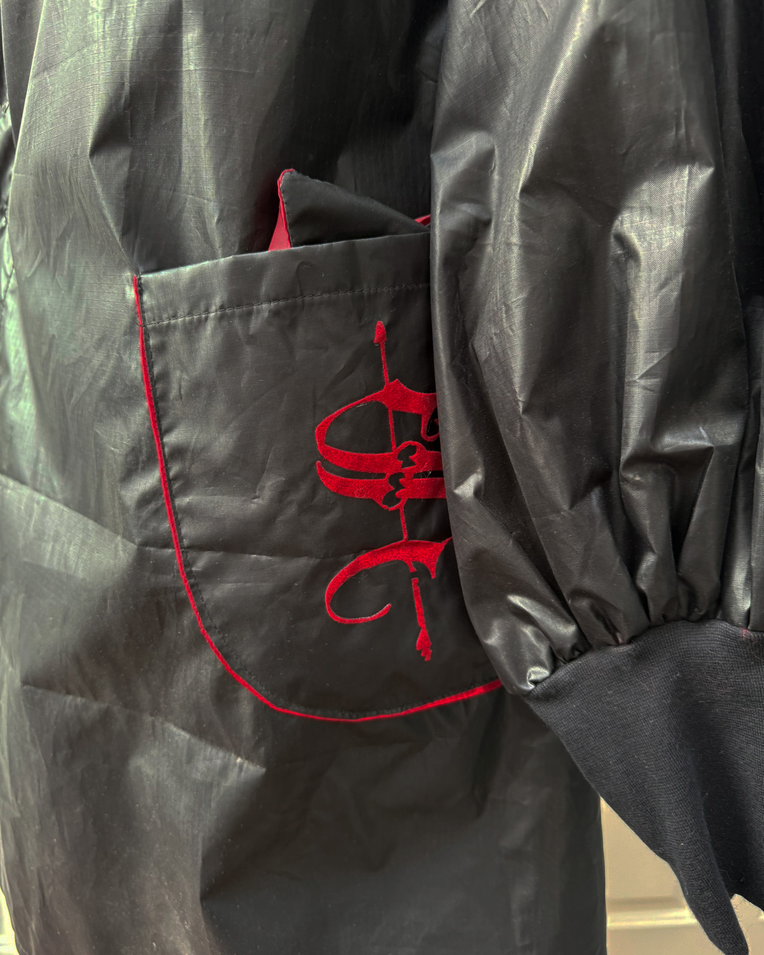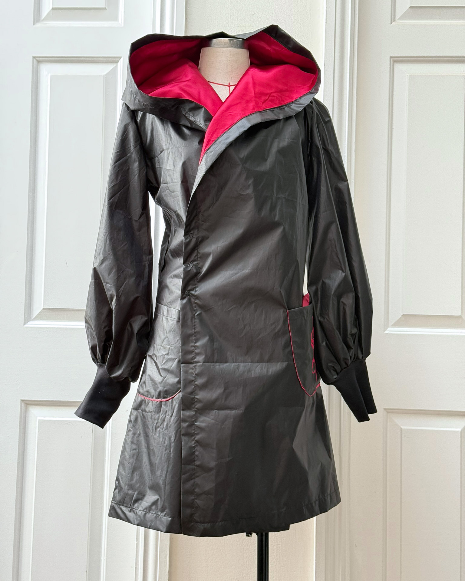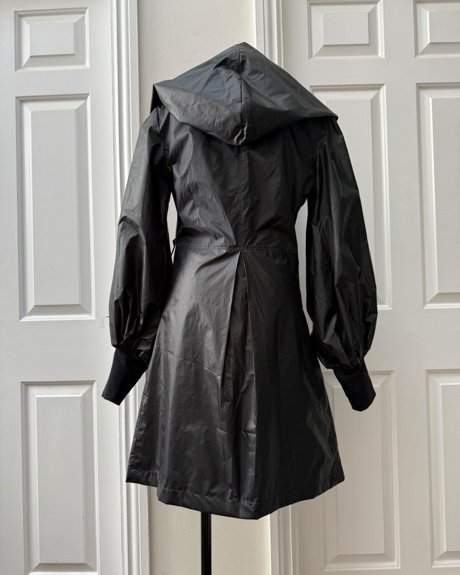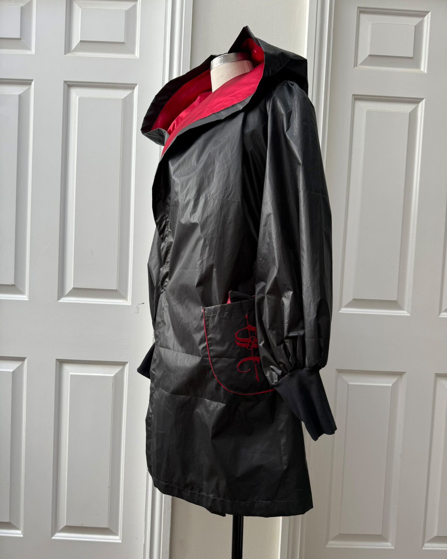 A rather delightful fully lined waterproof coat with cotton rib cuffs. Comes with a little bag to fold it up in to keep in your car/bag for a festival or a rainy walk.